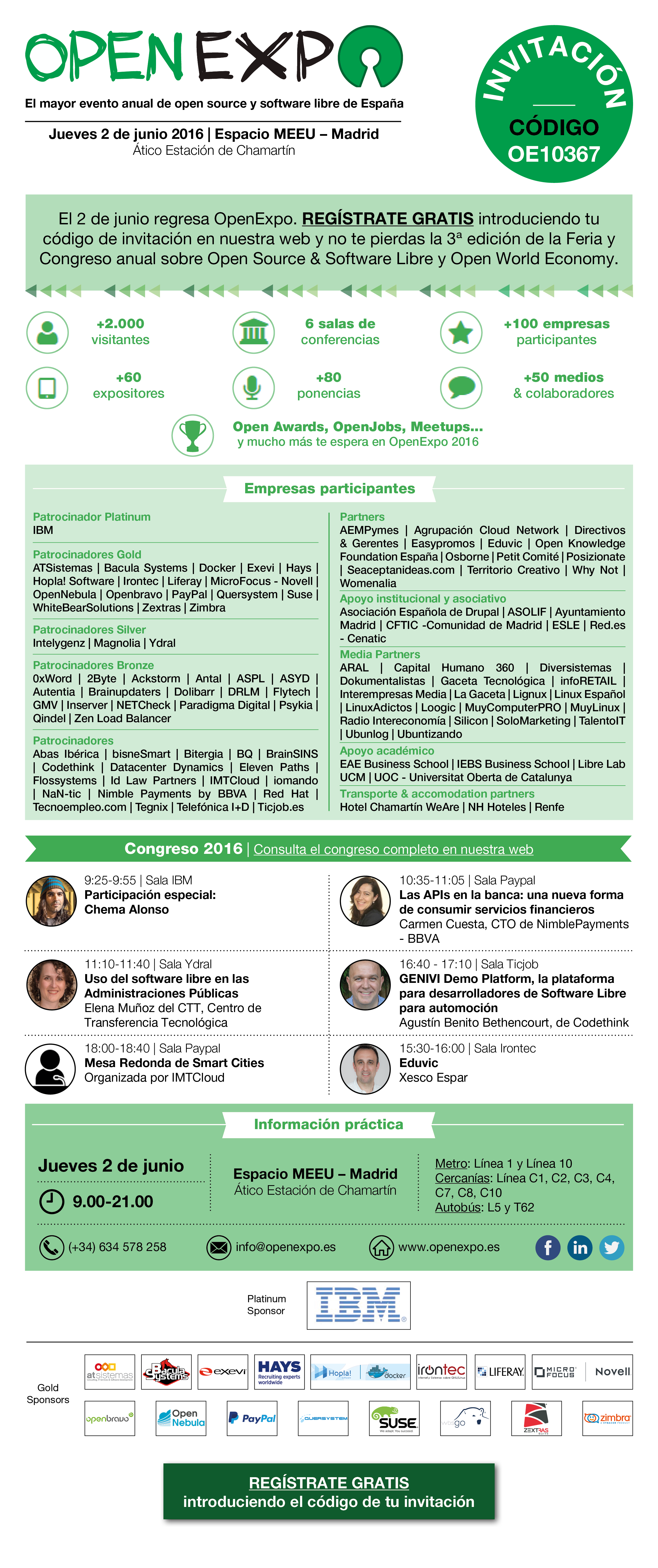 Te ofrecemos una entrada gratuita: usa el código promocional de Irontec (OE10367).